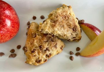Fresh diced apple and cinnamon chips complement each other in these moist and flavorful scones. With a crunchy cinnamon-sugar topping they become irresistible.